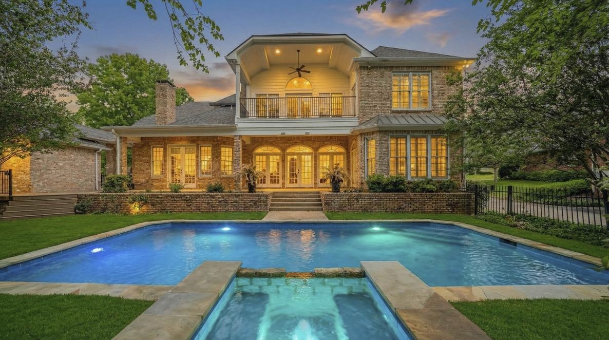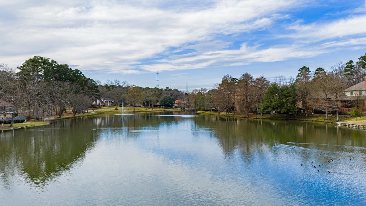 Exceptional lakefront home, completely reimagined. Gracefully situated on R&K Lake in one of Longview's most coveted neighborhoods, this Southern-inspired residence has undergone a comprehensive, high-end renovation that seamlessly blends timeless architecture with refined modern luxury. From the moment you arrive, fresh interior and exterior paint, gas lanterns, arched windows, and striking architectural details set a warm and elegant tone. Inside, the home shines with all-new hardwood flooring, designer lighting throughout, beautiful custom draperies, and thoughtfully curated finishes at every turn. The grand entry is anchored by a dramatic curved staircase, while the formal dining room is highlighted by an elegant chandelier and floor-to-ceiling windows. The kitchen has been completely reconfigured into a true showpiece, featuring custom cabinetry, striking quartzite countertops, and top-of-the-line Dacor appliances, including a professional-grade range, dedicated wine refrigerator, and a custom panel-front refrigerator that blends seamlessly with the cabinetry. There is also space for a secondary refrigerator in the laundry room for added convenience. Multiple living areas offer stunning lake views, including a cozy den with fireplace and an upstairs living or game room that opens to a spacious balcony overlooking the pool and lake, with access from both the den and a secondary bedroom. The primary suite is a serene retreat with a spa-like bathroom showcasing quartzite countertops, new cabinetry, a soaking tub, and all-new plumbing fixtures. Each generously sized bedroom offers its own private en-suite bath with updated tile, glass enclosures, and refined finishes throughout. Thibaut wallpaper adds a layer of designer charm in the downstairs powder bath, along with custom shelving. A versatile flex room upstairs provides additional storage or could easily function as a small playroom. Outdoors, enjoy true resort-style living with a resurfaced pool and hot tub, a newly constructed composite deck by Longview Custom Decks featuring wrought iron railing and a warranty, and sweeping views of the stocked lake. The entire roof is new, including high-end copper fittings. A fenced grassy area offers space for play or pets, while the Wildwood neighborhood features a beloved playground known for its beauty and strong sense of community. A rare opportunity to own a beautifully updated Southern-inspired lakefront home in Wildwood, offering space, sophistication, and timeless appeal in an unmatched setting.